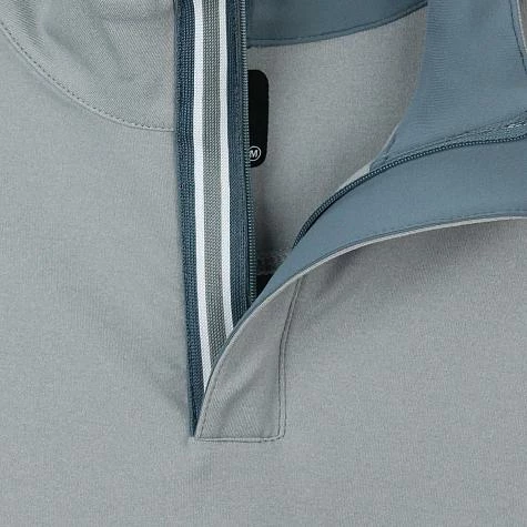 - Quarter-zip opening – with hidden placket and ribbon trim detail.