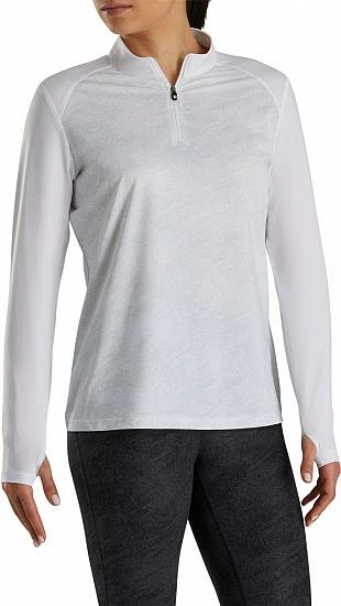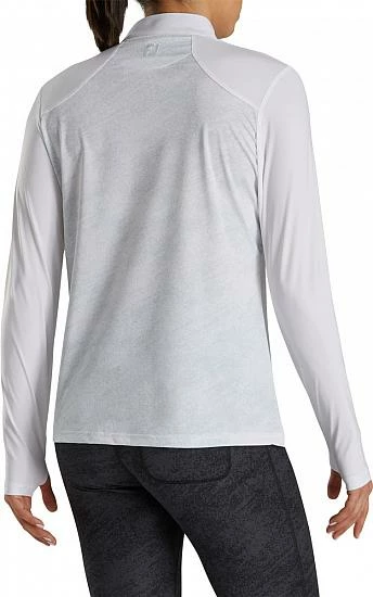 These FootJoy women’s long sleeve golf shirts are designed with a zip placket, antimicrobial technology, and the FJ logo embroidered on the back neck yoke.