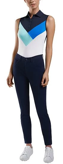 G/Fore Women’s Multi V Sleeveless Golf Shirts are made with 92% Polyester and 8% Spandex, a 5-button placket, and a self collar.