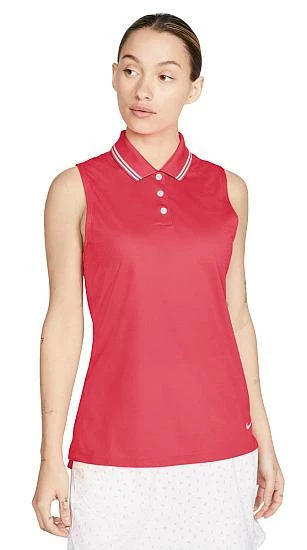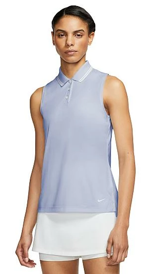 Nike Women’s Dri-FIT Victory Sleeveless Golf Shirts feature collar tipping and Dri-FIT technology to help you stay dry and keep you looking great.