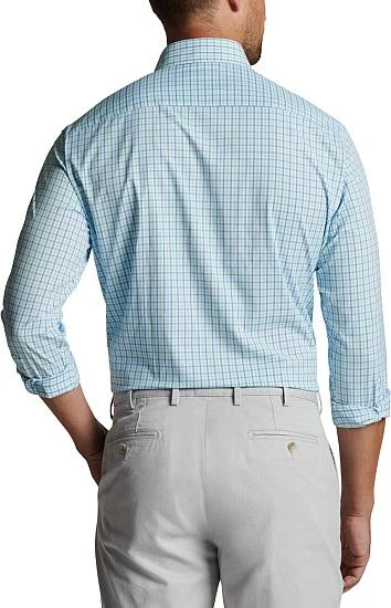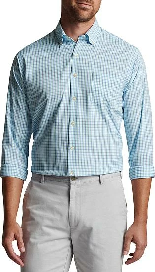 Peter Millar Daventry Performance Twill Sport Woven Button-Downs are constructed with 55% Nylon, 40% Polyester, 5% Spandex, left-chest pocket, button-down collar, and double-button barrel cuffs.