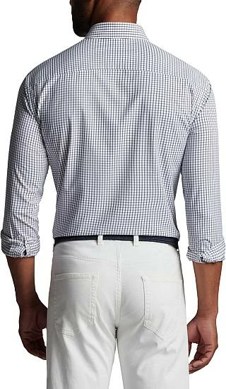 Peter Millar Hanford Performance Twill Sport Woven Button-Downs are constructed with 55% Nylon, 40% Polyester, 5% Spandex, left-chest pocket, button-down collar, and double-button barrel cuffs.