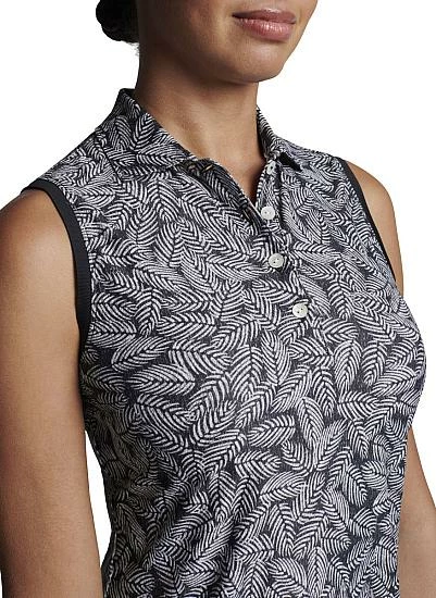 About Peter Millar Women’s Banded Sleeveless Golf Shirts – Black Palm Frond