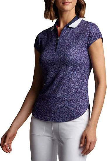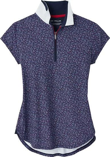 Peter Millar Women’s Bianca Cap-Sleeve Quarter-Zip Golf Shirts are constructed with 92% Polyester, 8% Spandex, knit collar, quarter-zip construction, subtle print, and novelty hem.