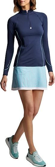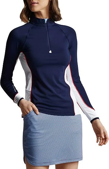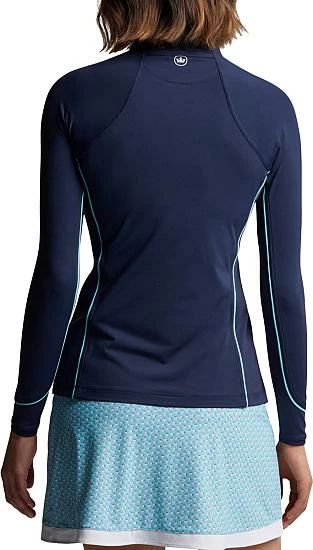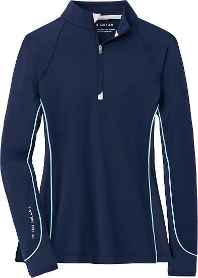Peter Millar Women’s Lightweight Sun Comfort Golf Base Layers are constructed with 92% Polyester, 8% Spandex, quarter-zip construction, self collar, and contrast piping for additional style.