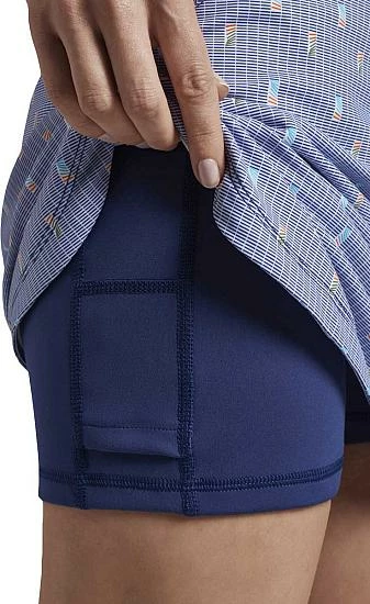 Peter Millar Women’s Performance Alice Petal Hem Dominoes Sport Golf Skorts feature a convenient control shortie with compression paneling for strategic body shaping.