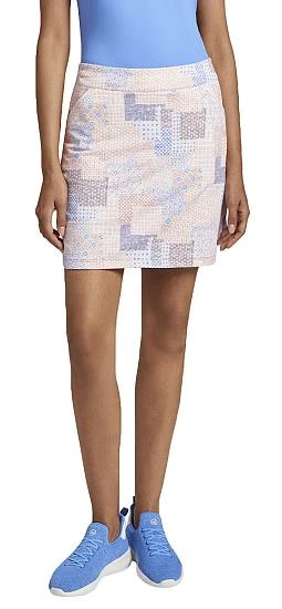 Peter Millar Women’s Performance Alice Petal Hem Patchwork Golf Skorts are constructed with 89% Polyester and 11% Spandex, 2 front slash pockets, and a new hidden waistband tie.
