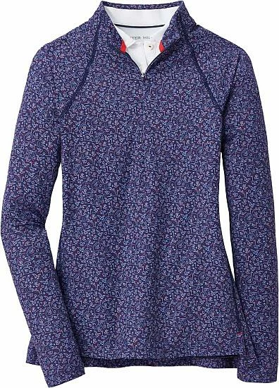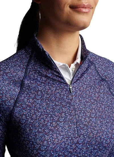 Peter Millar Women’s Perth Raglan-Sleeve Quarter-Zip Golf Pullovers feature stylish novelty print, superior moisture-wicking technology, and four-way stretch capabilities.