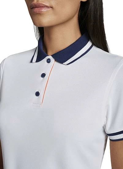 Peter Millar Women’s Whitworth Sport Mesh Golf Shirts are constructed with 94% Polyester, 6% Spandex, three-button placket, self collar, and contrast trim details.