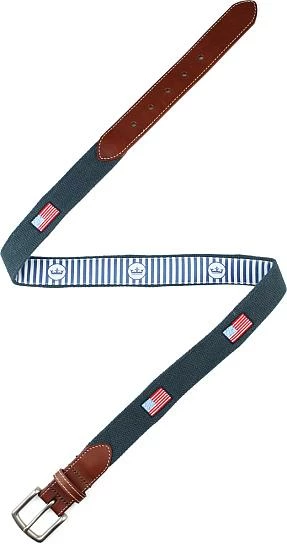 Peter Millar Woven Golf Belts are constructed with premium, luxury Cotton, full grain Leather, solid brass buckle plated in brushed nickel finish, and novelty embroidered designs offered exclusively at Golf Locker.