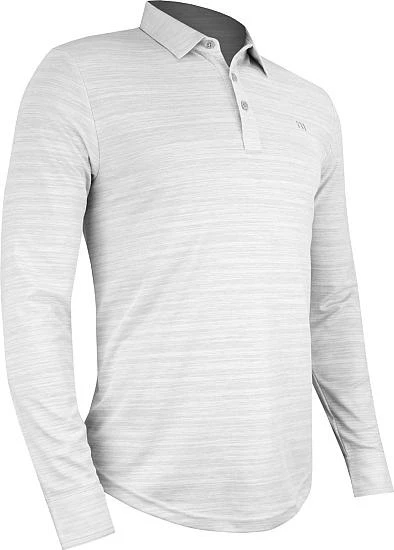 TravisMathew Herondale Long Sleeve Golf Shirts are constructed with 65% Pima Cotton, 35% Polyester, three-button placket, self collar, double-button barrel cuffs, and subtle heather print.